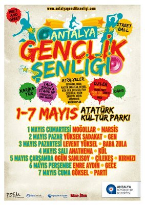 Muratpaşa belediyesi nin aynı zamanda 19 mayıs atatürk ü anma gençlik ve spor bayramı nda düzenleyeceği muratpaşa gençlik festivali yarın saat 14 00 de bayındır park ta.