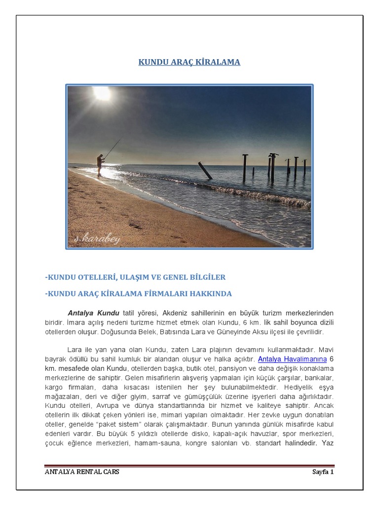 Antalya Rental Cars Kundu Arac Kiralama Turizm Plaj Antalya