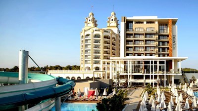 Side sorgun titreyen göl turizm merkezi sahil şeridinde denize sıfır mesafede özel plajlı ultra her şey dahil konseptinde faaliyet gösteren otel.