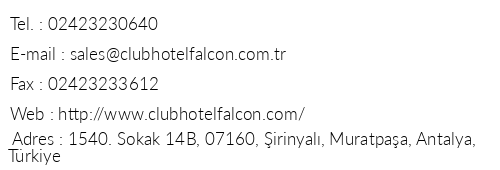 Club Hotel Falcon Antalya Iletişim