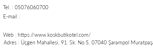 Köşk Butik Otel Antalya Iletişim