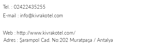 Muratpaşa antalya bölgesindeki kıvrak hotel telefon numarası.