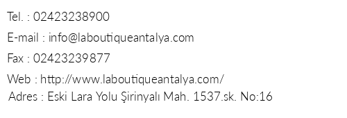 La Butik Otel Antalya Iletişim